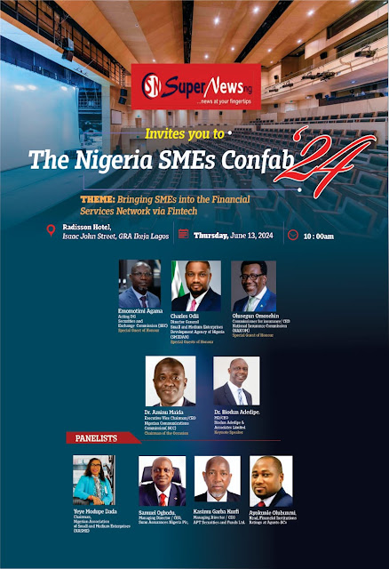 The Director General, Small and Medium Enterprises Development Agency of Nigeria (SMEDAN), Mr. Charles Odii, the Executive Vice Chairman/CEO, Nigerian Communications Commission (NCC), Dr. Aminu Maida, other regulators, experts, stakeholders from the financial services and ICT sectors, small business owners among others have confirmed their attendance at the SUPERNEWS Nigeria SMEs Forum 2024 scheduled for Thursday, June 13th 2024 at Radisson Hotel, GRA Ikeja, Lagos.
